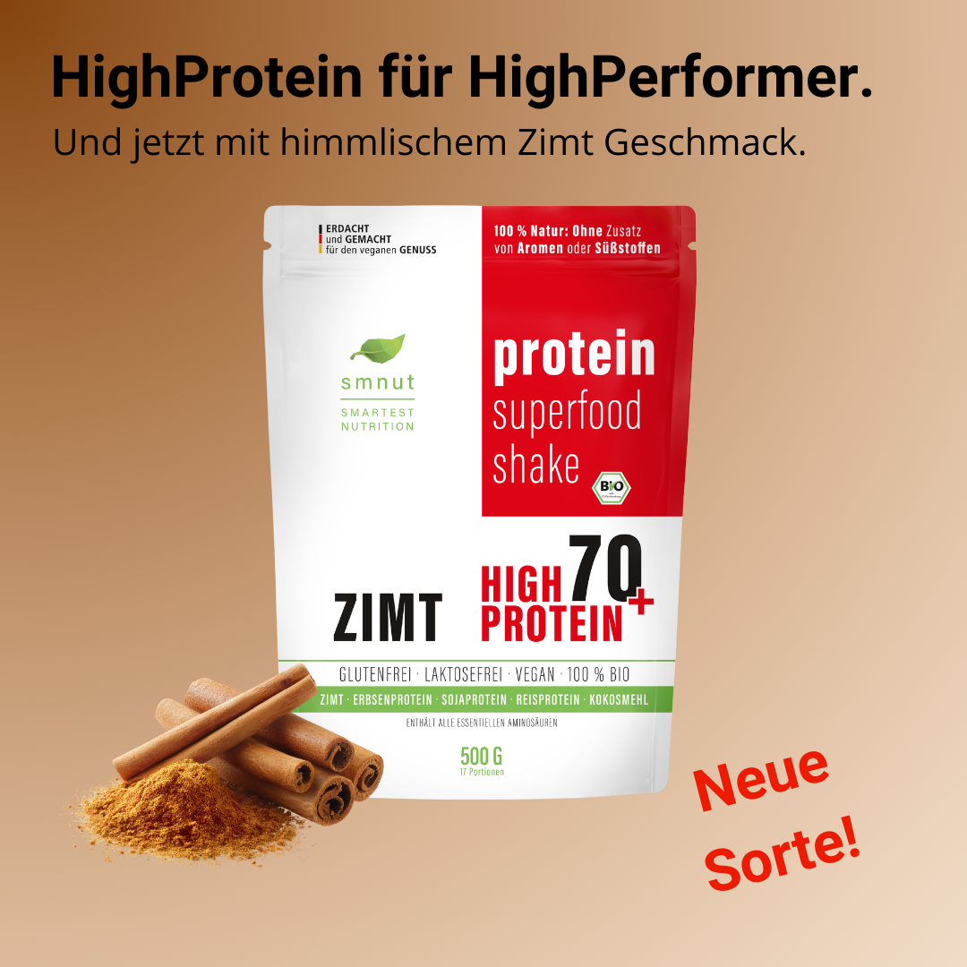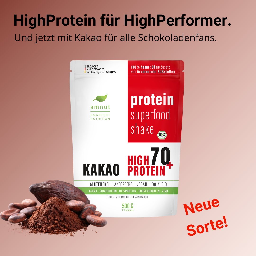 smnut ist All-In-One: Lebensnotwendige Proteine und besonders nährstoffreiche Superfoods in einem Produkt. So unterstützen dich die Proteinprodukte von smnut auf deinem Weg: Egal ob Muskelaufbau, Gesundheit, Naschen oder Abnehmen. Mit smnut brauchst du nicht mehr unzählige Produkte kaufen. Unsere pflanzlichen Protein Superfood Shakes sind vielseitig einsetzbar und auch perfekt für unterwegs. Mach dein Leben einfacher!